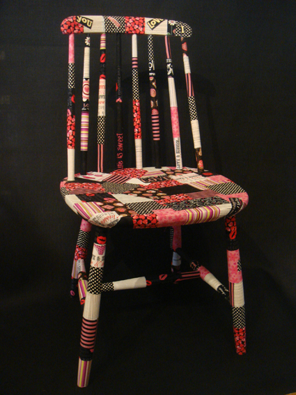Istället visar jag ”vårt projekt” till tidningen Fat Quarter (som kom till oss idag), en upphottad köksstol. Helt galen om ni frågar mig men man blir allt lite glad var gång man passerar den och tillhör man den slarviga typen så kan man säkert lägga en hög med småprylar/kläder på den utan att de direkt märks…de kan kanske samtidigt bli lite svårare att hitta när man ska ha dem.