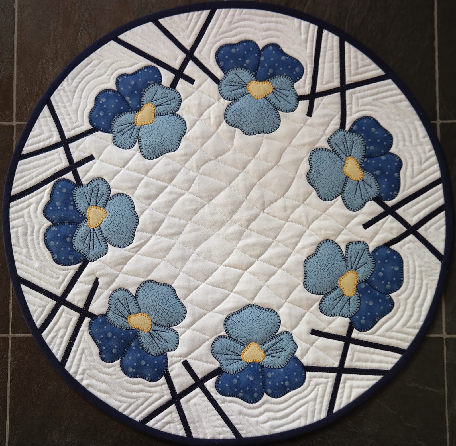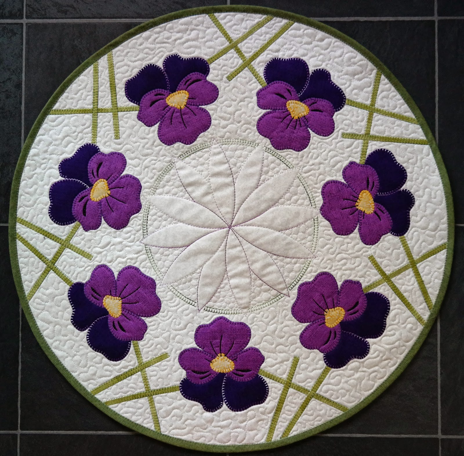 Fåglarna kvittrar så det hörs ända in och i morse tog jag årets första utomhusfika i solen på verandan, bara det är väl vårkänslor. Att dessutom sitta och jobba med Quilt design Solbritt och Marias rykande färska Pensémönster, kan det bli mer vår?