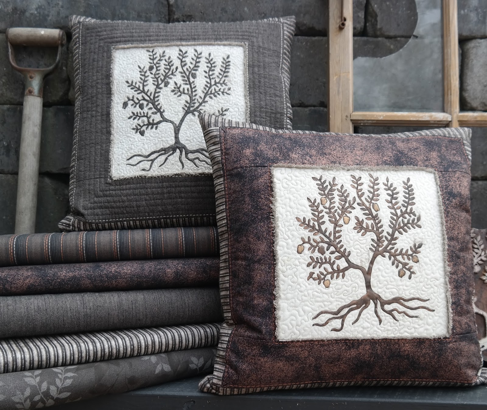 Nu har det blivit kuddar med trädet i centrum och enkla ramar runt om.
