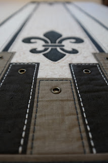 Det är en väldigt avskalad och ren kvilt med flera fina detaljer. Nytt för oss är att vi denna gång har gjort hål i både kudden och löparen och satt öljetter i dem. Kul detalj!