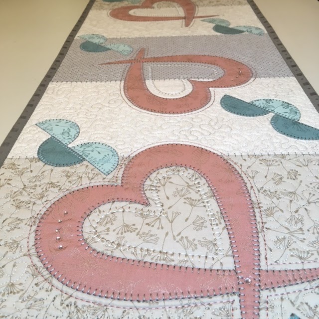 Nu har vi packat tyger till QuiltDesign Solbritt & Marias Hjärtan. Hela löparen är sydd av Pearl Essens-serien från Maywood och blev riktigt fin. Alla tygerna har ett pärlemorskimrande tryck så det blir en extra lyster. Vår löpare har dessutom blingats med kristaller och blev därför extra glammig.Du hittar tygerna här, mönstret här.