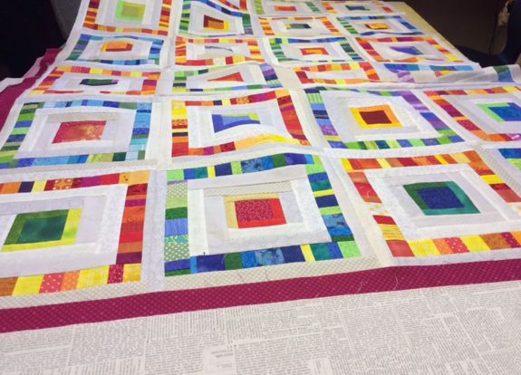 Det fina täcket på bilden är Sprätthönsens nya lotteritäcke som nu ska kviltas och sedan lottas ut under utställningsdagarna. Täcket är sytt av rester och inspirationen har vi hittat någonstans på nätet.