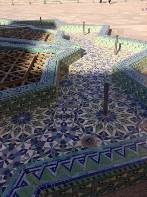 I Casablanca besökte vi moskén som ni ser på bilderna här. Den tredje största i världen och den byggdes på 80/90-talet, helt otroligt i alla delar, det går helt enkelt inte att nämna bara en grej utan bäst att bara njuta och förundras. Där var lapptäckesinspiration vart man än vände blicken.