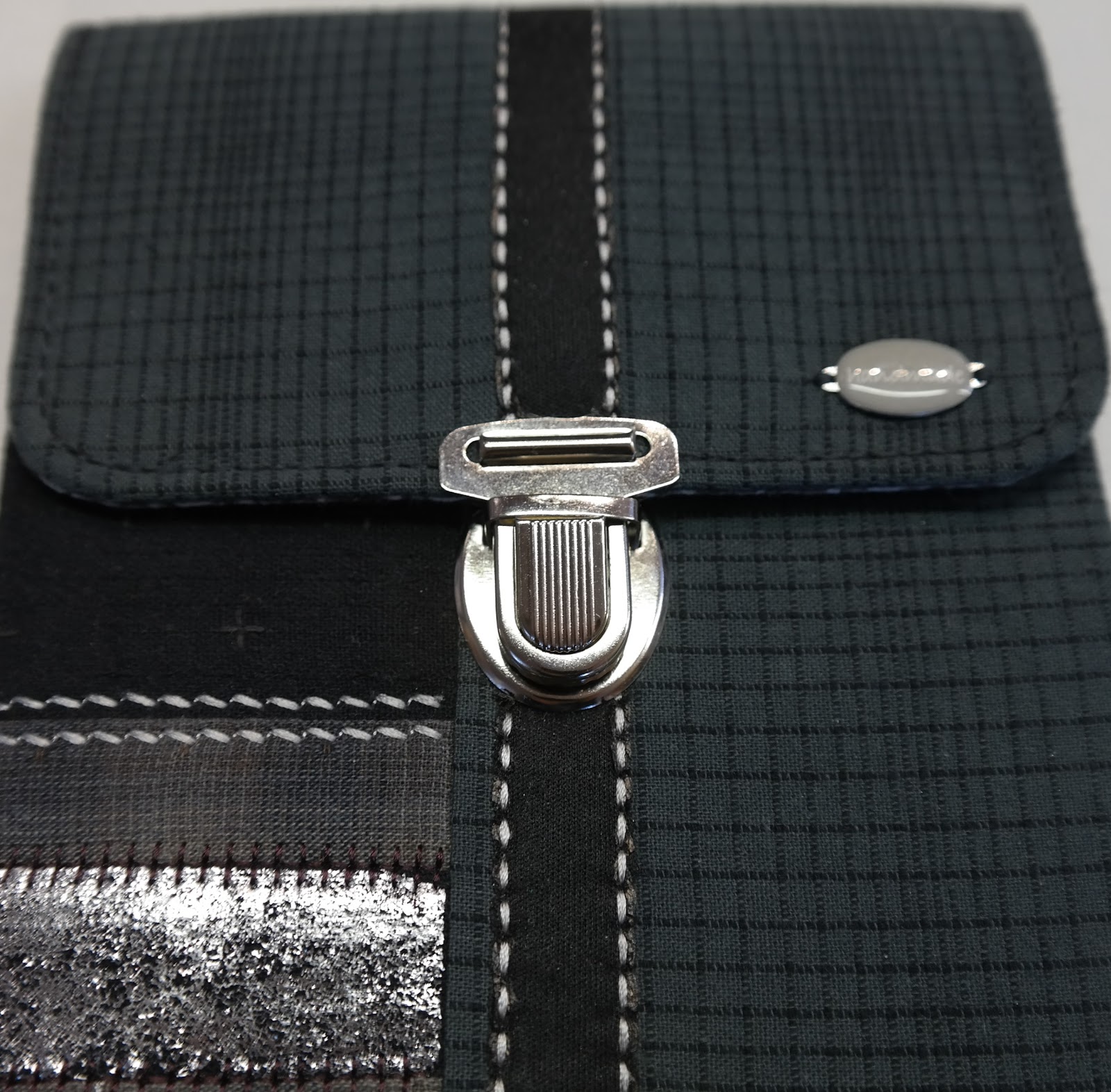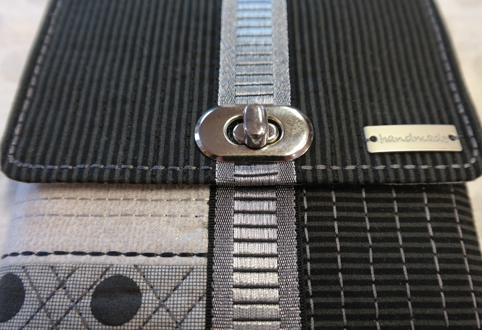 Här har vi använt ett istickslås och ett neutralt svart band. Du hittar olika lås och Handmade-märken i vår webbshop under rubriken sybehör.