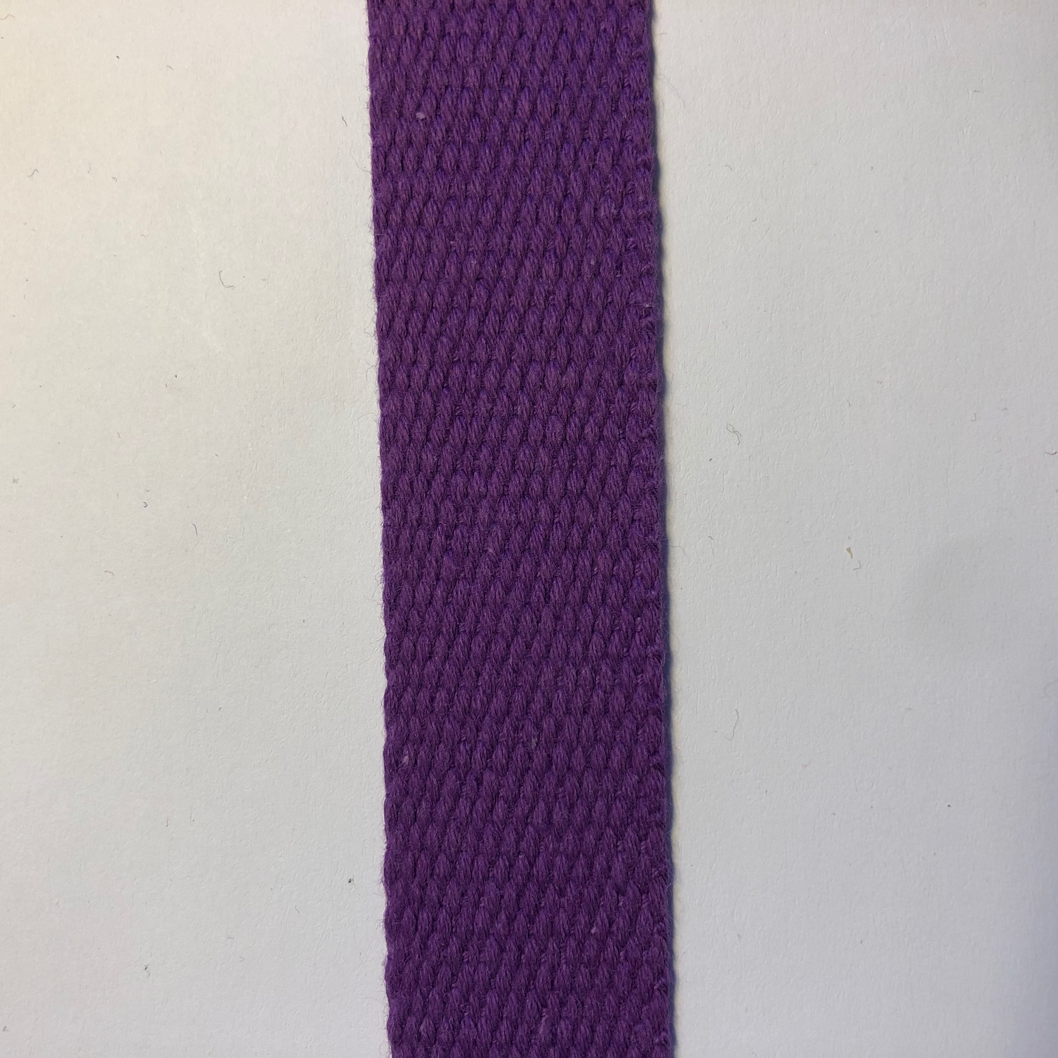 Lila 25 mm band lämpligt till väskhandtag, axelremmar mm. Många använder bandet som stomme och klär in det helt med tyg så då spelar färgen mindre roll. Antal är i st men innebär meter, säljs endast i hela metrar.